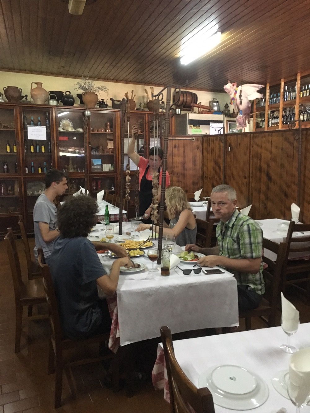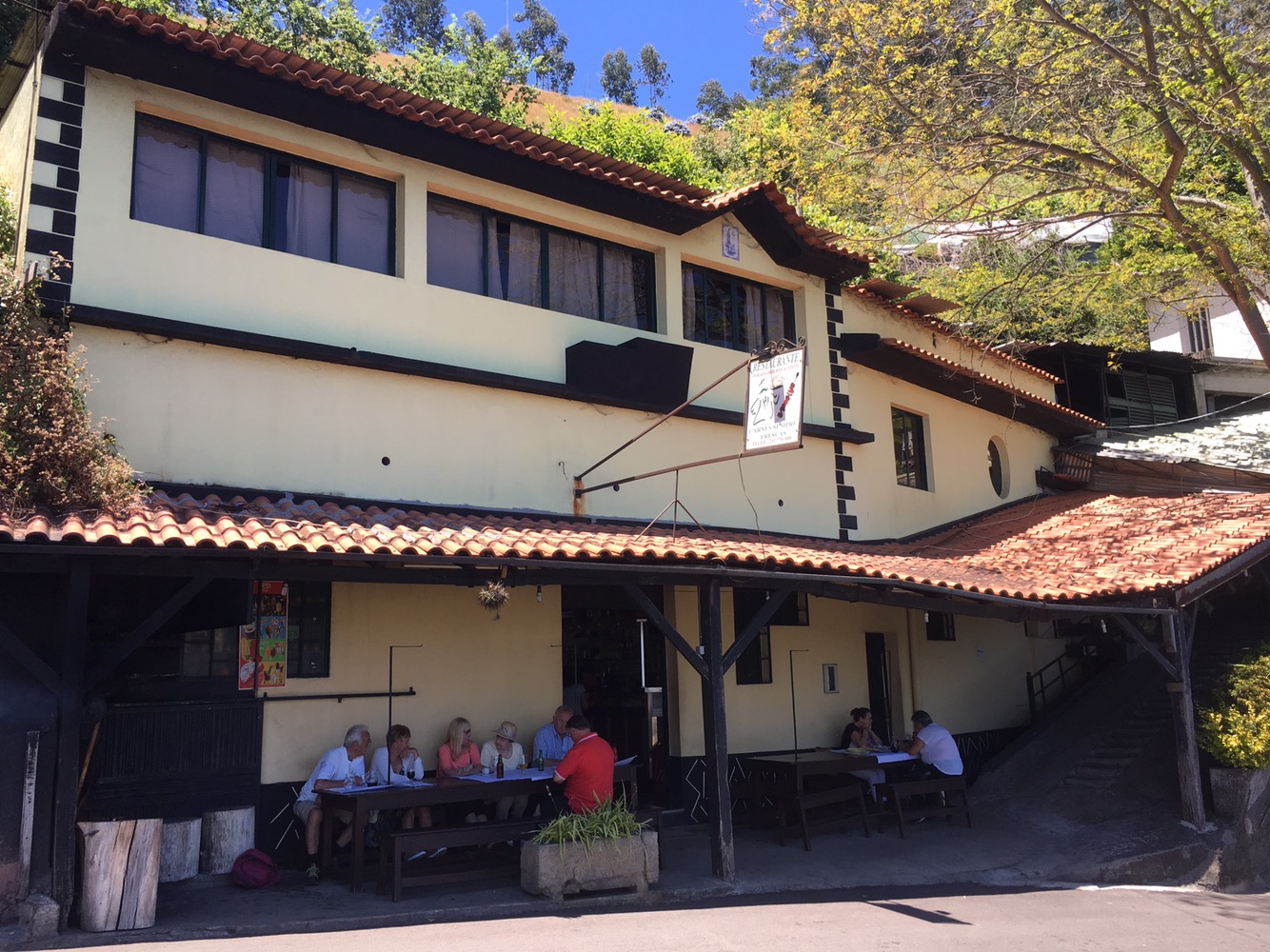 Bagefter ville vi gerne finde en restaurant beskrevet i guidebogen som ‘meget simpel, men god’, hvor de serverede de traditionelle madeiranske kødspyd. Det lykkedes med lidt frem og tilbage og det var absolut bøvlet værd: Det langsomste (køkkenpersonalet var ved at få frokost da vi kom) og bedste mad vi har fået på Madeira.