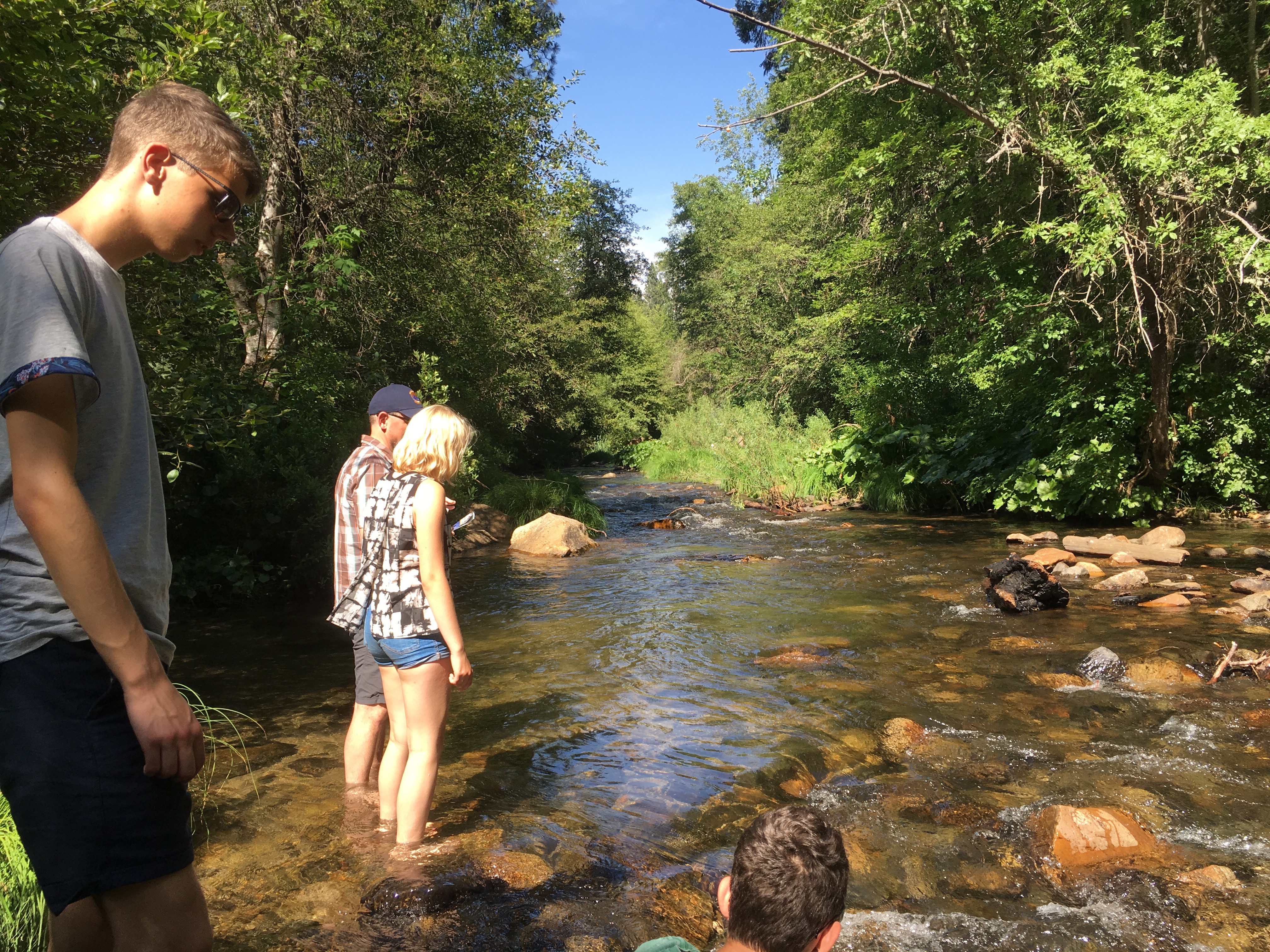 Vi forlod Santa Rosa campingpladsen ved 9-tiden og valgte en rute længst væk fra San Francisco, som først kørte gennem Napa Valley, meget pænt, så forbi Stockton, virkeligt grimt, gennem Copperoplis, over 40 grader varmt – her var der heldigvis et supermarked baseret på, at folk selv laver i hvert fald en del af deres mad selv, så Jakob og Albert fandt nogle gigantiske bøffer, se billede senere. Vi var fremme på campingpladsen ved 16-tiden og kunne nå at køle benene i bækken der løb langs med pladsen – dejligt!