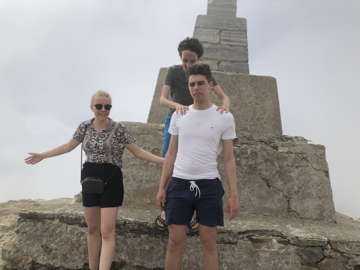 Vi så de første skyer på Tinos, og det var en alternativ form for naturoplevelse at gå op på toppen i stormende men varmt vejr!