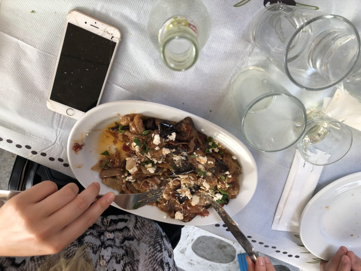 Her til aften gik vi ned i byen og spiste på en restaurant, hvor vi alle fik græske retter. Det var ikke fornemt, men vellavet mad – hurra for TripAdvisor, for de lå allerlængst inde i en gyde..
