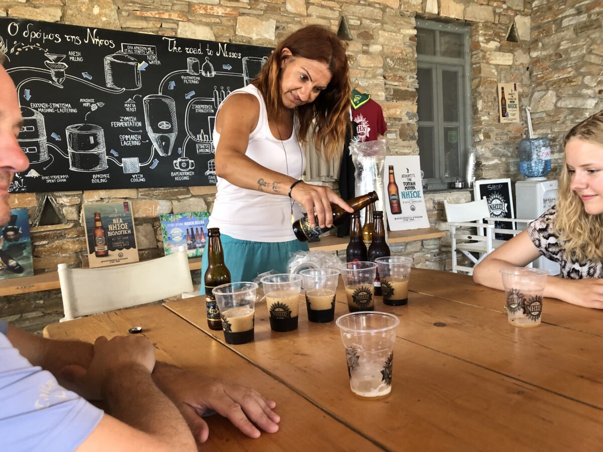 Vi spiste frokost hjemme, og om eftermiddagen havde vi booket en rundvisning på mikro-bryggeriet Nissos. De vandt en sølvmedalje i en europæisk øl-konkurrence to år efter de startede i 2012. Det var en fin lille rundvisning og ølsmagning, der var kun os.