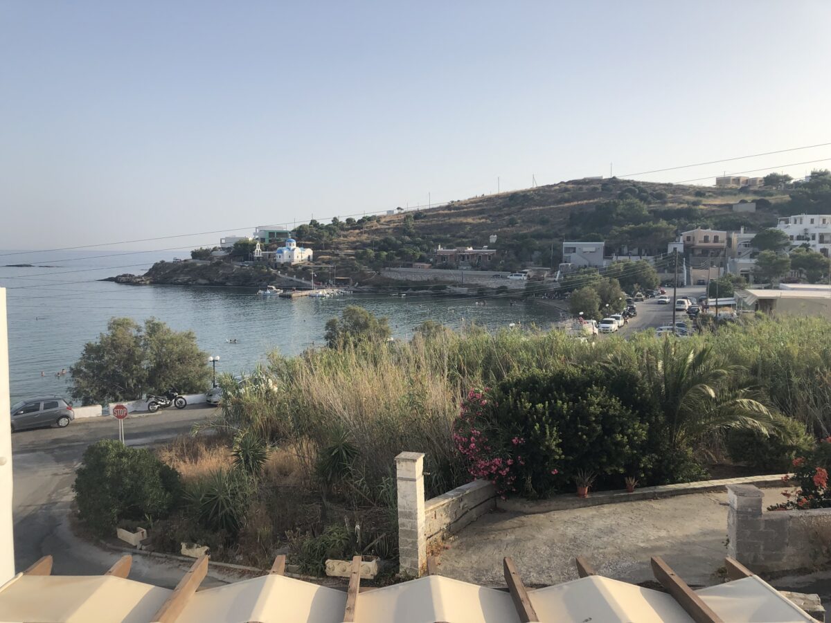 Efter en kort sejltur kom vi til Syros, hvor der var om muligt endnu varmere, a la 32-33 grader. Vi fik vores bil og kørte ca. 10 minutter sydpå til en dejlig lejlighed med en kæmpe terrasse og AIR CONDITION!! Hurra for det.