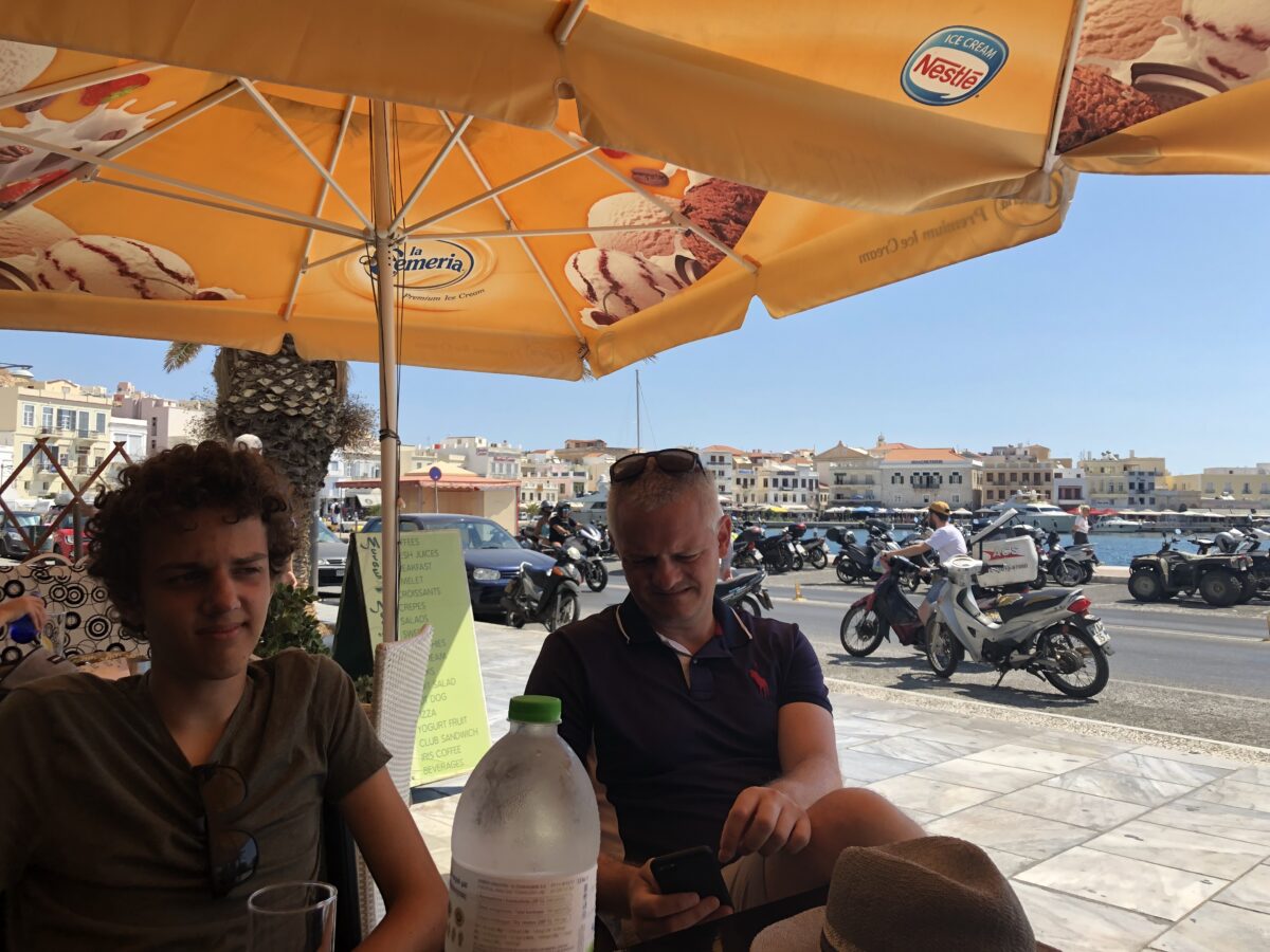Efter Tour de France gik vi ud for at finde et sted at spise, vi gik efter TripAdvisor for ikke bare at gå og gå, og det var udmærket, simpel men velsmagende mad. Til dessert fandt vi de bedste is vi har fået i Grækenland.