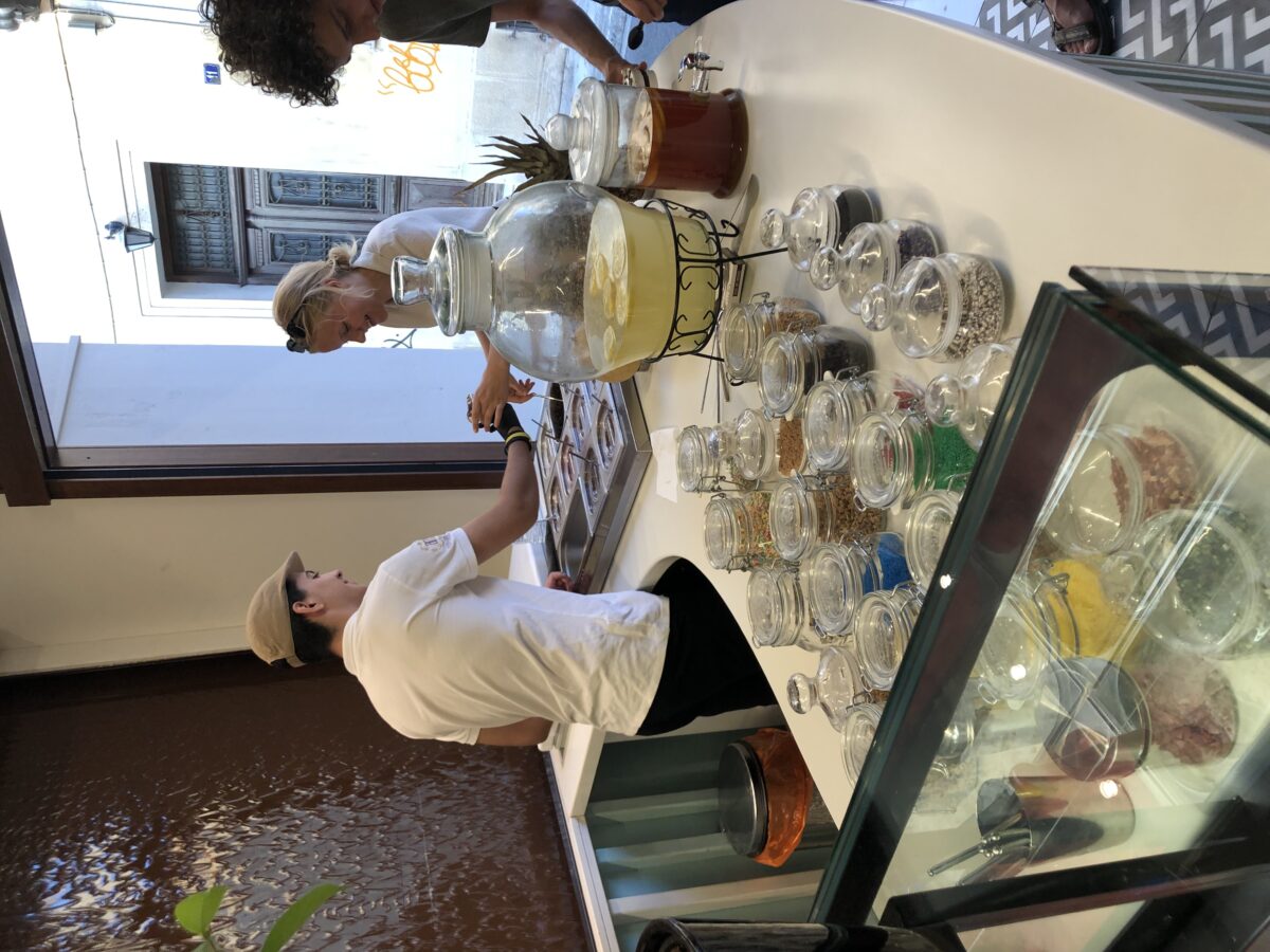Vi afleverede bilen og fik en tidlig frokost på en af fortovsrestauranterne ved havnen: